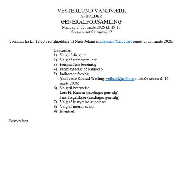 Velkommen til Vesterlund Vandværk